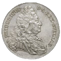 Åtsidan visar kungens porträtt i profil. Omskrift FRIDERICUS·D·G·REX·SVECIAE· [Fredrik med Guds nåde Sveriges konung].
